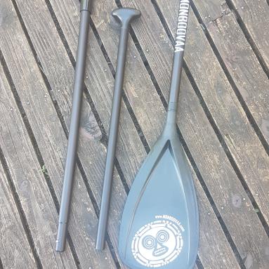 C'est la rame Haut de gamme de chez MONBOOVAA! Elle est entiérement en carbone: manche et pale pour vous procurer une accélération incroyable... Attention, rame fixe, non ajustable que l'on coupera par la suite. Son double concave vous permettra de plus facilement capter la masse d'eau pour avoir un appui fixe soit une transmission de puissance immédiate. Avec un manche légérement soft, cette rame sera votre meilleur compagnon pour vos virées aquatiques, en mode détente comme sportives.