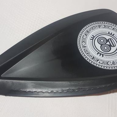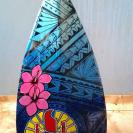 Choisissez la ou les couleurs de fond, les motifs, symboles (croix marquisienne, tiki, manta, ...), prénom, que vous souhaitez voir aparaitre et nous nous occupons de composer autour. Une couche de vernis sera appliquée en finition pour protéger votre composition.