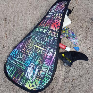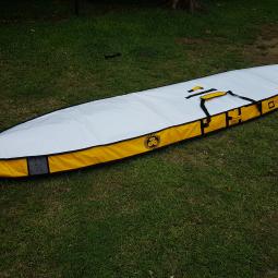 Housse en Nylon/Coton, qui s'enfile comme une chaussette avec rétracteur en tail (en bas de planche). Disponible en 12 ou 14 pieds mais possible de l'ajuster à votre planche avec les doigts de fée de notre couturiére fétiche. Protection du nose de la planche en renfort moltetoné.