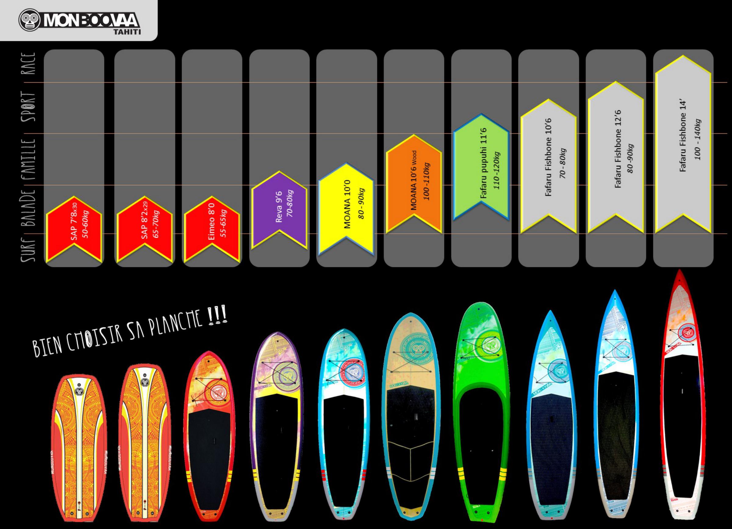 Bienvenu dans la famille Fafaru Fishbone, notre gamme sportive! Elle se décline en différentes tailles et différentes largeurs pour des utilisations familiales ou compétitives.