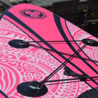 Ce paddle est également équipé d'élastiques permettant d'embarquer vos palmes/masques/ sac étanches / Monoi & Gloss / glaciére / ...Et Messieurs cette fois ci plus d'excuses, vous pouvez tout embarquer! La glacière comme votre Vahine!