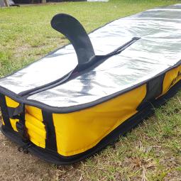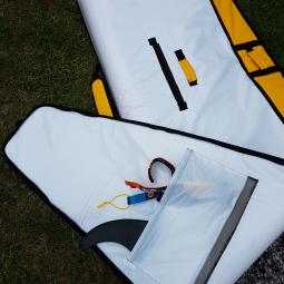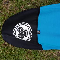 Housse en Nylon/Coton, qui s'enfile comme une chaussette avec rétracteur en tail (en bas de planche). Disponible en 12 ou 14 pieds mais possible de l'ajuster à votre planche avec les doigts de fée de notre couturiére fétiche. Protection du nose de la planche en renfort moltetoné.