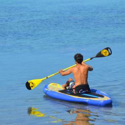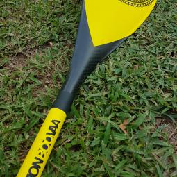 C'est la rame Haut de gamme de chez MONBOOVAA! Elle est entiérement en carbone: manche et pale pour vous procurer une accélération incroyable... Attention, rame fixe, non ajustable que l'on coupera par la suite. Son double concave vous permettra de plus facilement capter la masse d'eau pour avoir un appui fixe soit une transmission de puissance immédiate. Avec un manche légérement soft, cette rame sera votre meilleur compagnon pour vos virées aquatiques, en mode détente comme sportives.