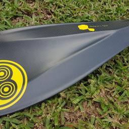 Voici l'autre rame haut de gamme de chez MONBOOVAA! Elle est entiérement en carbone: manche et pale mais avec un reveétement bamboo sur ces 2 parties. Le carbone vous conférera légéreté et accélération, tandis que le bamboo apportera une rigidité supplémentaire dans le shaft (manche) pour avec encor eune meilleure transmission de puissance. En plus de ces qualité technique, c'est aussi un véritable plaisir esthétique. Rame aux critéres d'accroche plus tolérant en balade comme en Sport.