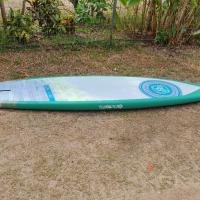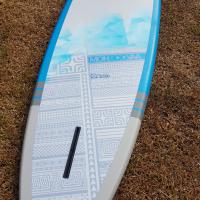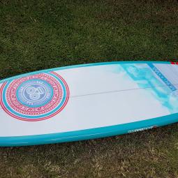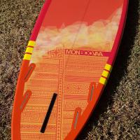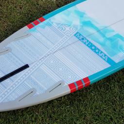 En ce qui concerne les caractéristiques Surf de ce Paddle, son Tail large vous apportera de la stabilité sur des plan d'eaux agités. Avec son système 3 ou 4 dérives, vous adapterez votre planche à toutes les conditions Beachbreak comme Reefbreak! Son Shape vous permettra de débuter à vous exprimer avec de longues courbes harmonieuses, "old school" ou proche d'un style longboard. Pour tous les énervés en recherche de Radicalité, passez votre chemin et optez plutôt pour la Eimeo 8'0 ou la Moana 10'0 suivant votre gabarit.