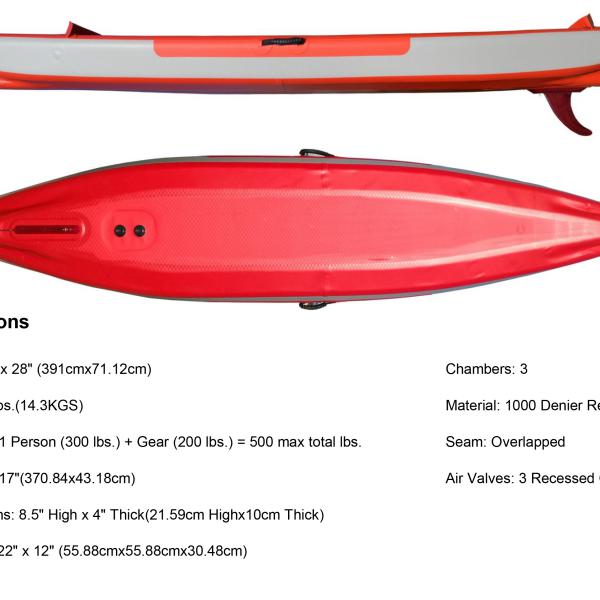 * Une technologie Drop Stitch FUSION à la masse volumique importante, garantissant une rigidité de pratique à partir de 7-9PSI et diminuant ainsi les risques d'explosions.