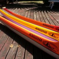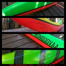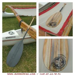 C'est la rame Haut de gamme de chez MONBOOVAA! Elle est entiérement faite à la main dans nos ateliers. Le manche reste en bois pour garantir une certaine souplesse dans le manche et ainsi ne pas traumatiser les ligaments de vos épaules. En revanche toute la pale / le rapa, est entiérement en structure sandwich carbone. Ce combo en fait donc une rame agréable, tolérante et performante.
