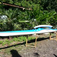 TEHEI Va'a: est un modéle destiné à un public un peu plus averti souhaitant sortir en mer ou océan. Son point fort est sa remontée au vent! il brise les vagues mais vous fera également découvrir la glisse sur des houles courtes.