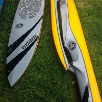 Nous les proposons en classique bois, en profilé bois ou en carbone. Le carbone pour la pure performance, le classique bois pour la balade et les profilés pour les joueurs amoureux de la glisse et des vagues. Ces derniérs ont une constructions en lamellé collé et leur structure profilée leur assure une robustesse à toute épreuve!